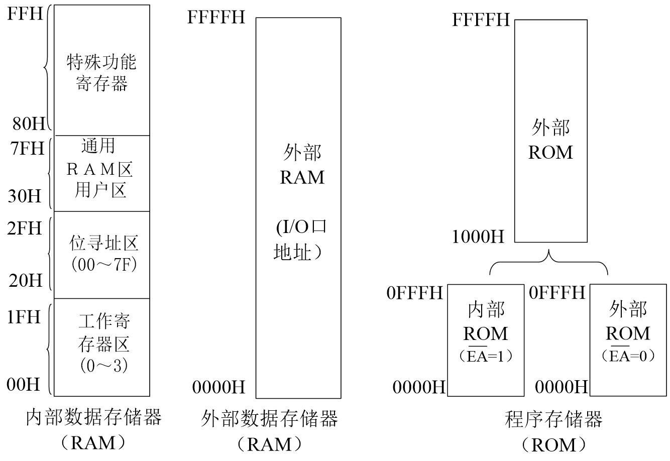 - 外部程序存储器寻址空间为64KB
