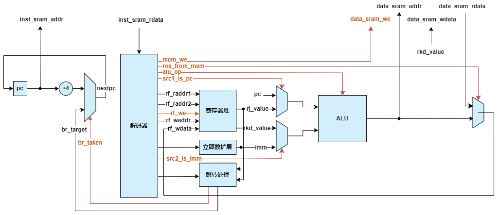 在前文中的数据通路图中,我其实已经将跳转处理调整到译码阶段了。